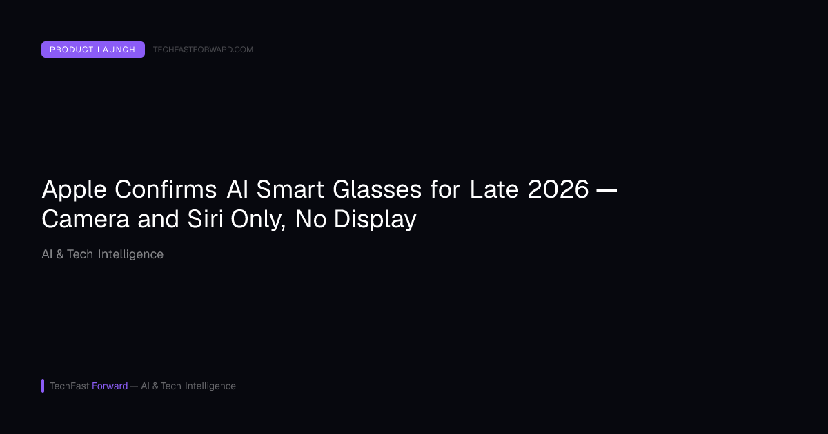 Apple Confirms AI Smart Glasses for Late 2026 — Camera and Siri Only, No Display